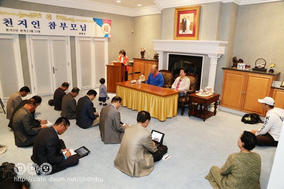 of the message. - Rev. Katsumi Kambashi Hyung Jin Nim's couple, Ye Jin Nim, her daughter's couple (Shin Hwa Nim and Yeong Eung Nim) and her granddaughter Shin Mi Nim, Kwon Jin Nim's couple, Jeung Jin Nim, and Hoon Sook Nim attended the meeting that day together with Korean leaders. Prior to the reading, True Parents cut the cake to celebrate the birth (at 5:10 a.m. on 4.13 HC / June 2, 2012) of the son of Kook Jin Nim and Ji Hye Nim. Father named him 신주 (信主: Shin Joo). This is Kook Jin Nim family's 7th child. Father said: "The name 'Shin Ju' means that the dragon comes in the year of the black dragon, carrying a Cintamani Stone in its mouth and becoming the owner."