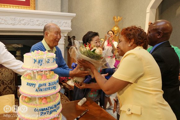 30th Blessing anniversary of 2075 couples, and received flowers from