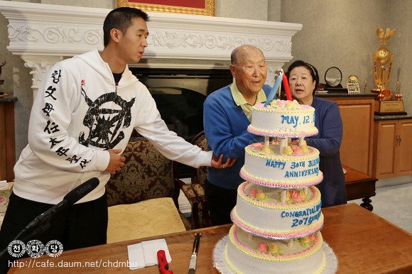 of the message. - Rev. Katsumi Kambashi Prior to the meeting, True Parents cut the cake to commemorate the