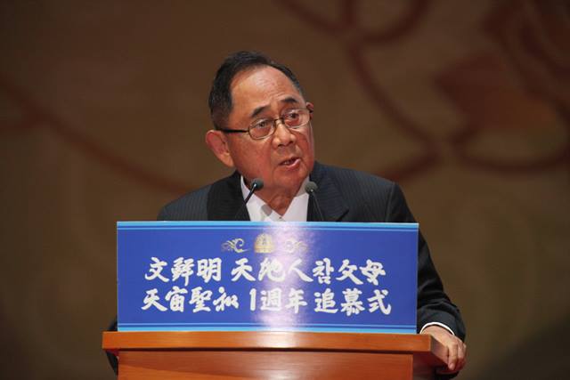 Mr. Jose de Venecia said, “I couldn’t imagine Rev. Moon passing away, he who had this endless enthusiasm with superhuman energy. I can feel that Rev. Moon is here at the memorial ceremony. Rev. Moon and Dr. Hak Ja Han Moon were always together and even now they are together. Rev. Moon led the transcendent religious movement and taught us that without cooperation between religions and religious leaders, the United Nations can’t succeed on its original mission. Also, he taught me that the family is a school of love. After the Blessing Wedding ceremony that was officiated by Rev. Moon and Dr. Han, my family got stronger. Let’s not make a sad memorial but achieve the peaceful world that Rev. Moon determined to create.”