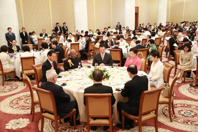 Dr. Chul Seung Lee, Chairman, Seoul Peace Prize Cultural Foundation; The Venerable Seong Ta, Head Monk of Bulguk Temple; Minister Sung Choon Park of Patriots and Veterans Affairs; Hon. Bong Ho Kim, Former Vice Chairman, Korean National Assembly. Hon. Domitien Ndayizeye, former President of Burundi; Mrs. Aude Ndayizeye, former First Lady of Burundi; Hon. Malimba Masheke, former Prime Minister of Zambia; Hon. Jose de Venecia, former Chairman of the National Assembly of the Philippines.