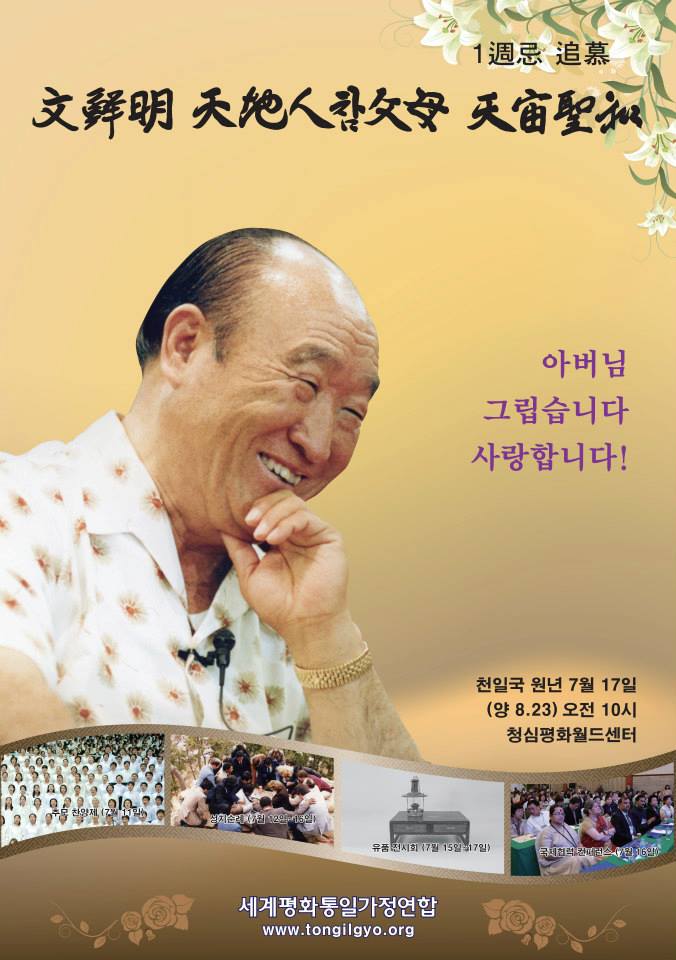 "The First Anniversary of the Universal Seonghwa of Sun Myung Moon, the True Parent of Heaven, Earth and Humankind – August 23, 2013, Gapyeong, Korea."