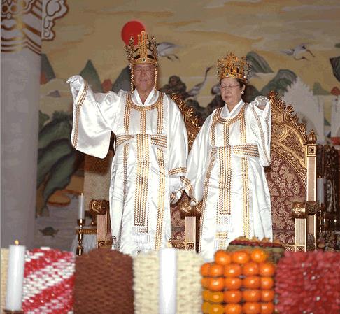 The gathering was addressed, being told: "This is the Holy Coronation of God's Kingship. True Father had to officiate.