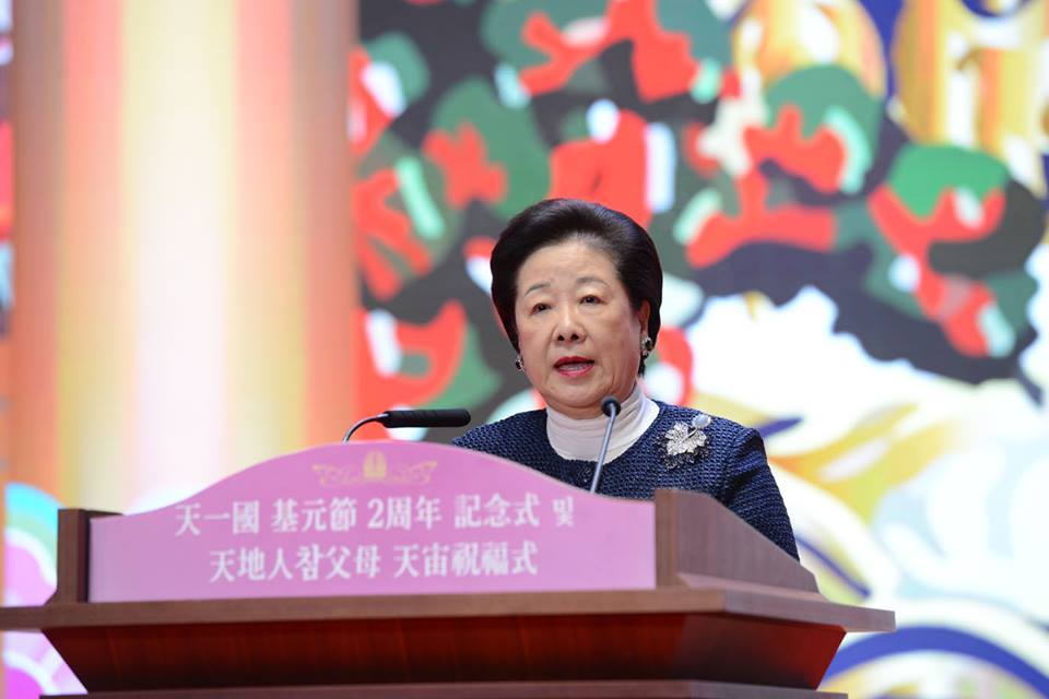 “True Mother”, Dr. Hak Ja Han Moon, gave the main address on March 3, 2015 at the Second Anniversary of the Foundation Day for the establishment of Cheon Il Guk and the 2015 Cosmic Blessing Ceremony held at the Cheongshim Peace World Center and officiated by the True Parents of Heaven, Earth and Humankind. True Mother spoke on the responsibility for Tribal Messiahship that all families inherit when they receive the Marriage Blessing.