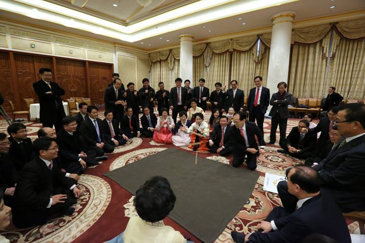 The first Hoon Dok Hwe of the New Year according to the solar calendar was held on January 1, 2014. 155 leaders in Korea participated. Before the reading, True Mother stated the motto for 2014: "Let us become true owners of Cheon Il Guk who practice true love in resemblance to our Creator, the Heavenly Parent!" and asked that we uphold this motto up until 2020.