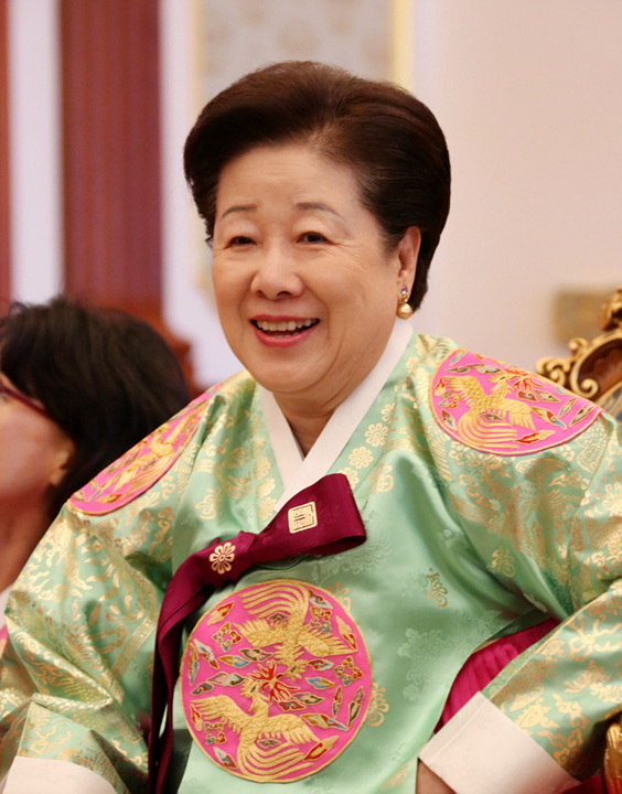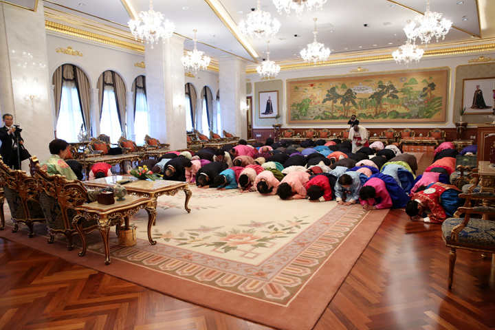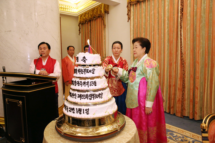 Approximately 90 Unificationists from Korea and Japan attended a congratulatory luncheon with True Mother to celebrate Heavenly Parent’s Day. Participants offered a bow of respect at the Bonhyangwon (True Father's burial ground), before the luncheon, and then participated in a toast and a cake cutting to ring in the New Year. Following are some of True Mother’s words from the event: