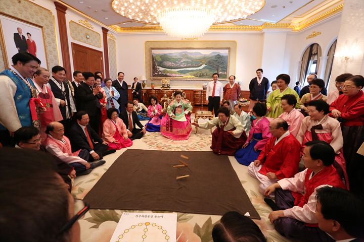 True Mother joined in with leaders and members for a traditional Korean New Year’s game, Yute, and sang one of her favorite songs, "사랑해 당신을" (Saranghae Tangshineul—Most beloved Spouse) as an offering for the day.