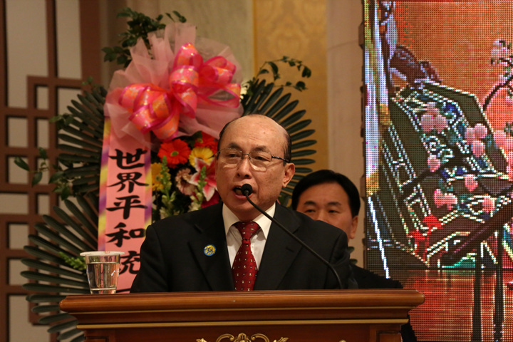 FFWPU-Korea President Rev. Kyeng-seuk Lu serves as emcee of the Foundation Day Pledge Service