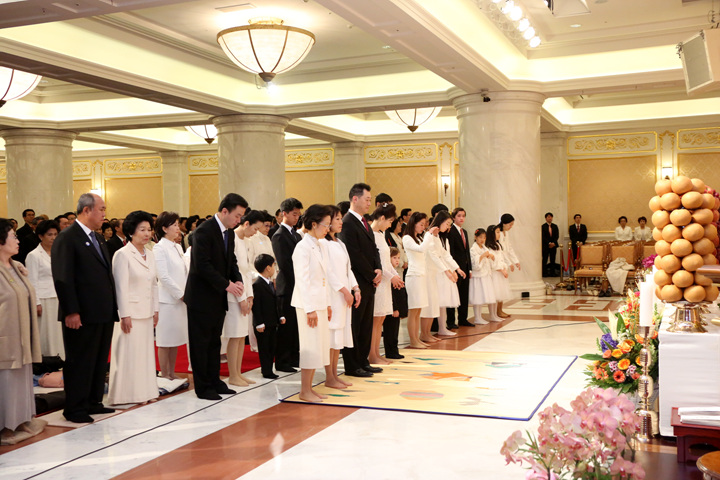 the True Family at the First Anniversary of Foundation Day Bowing