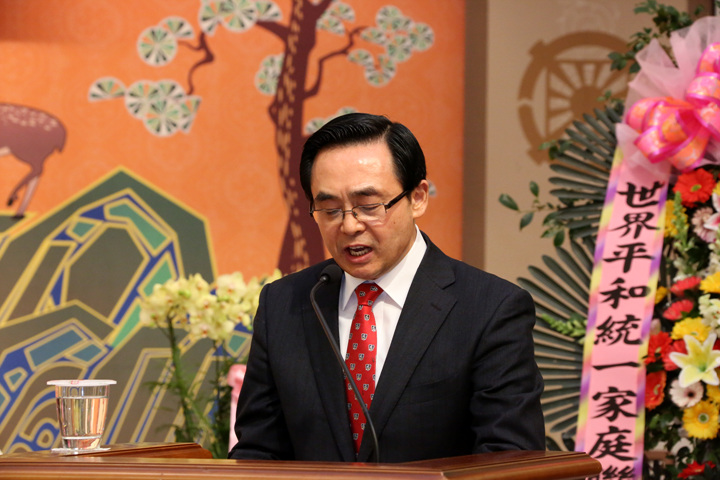 Japanese Continental Director Yong-Cheon Song offered up a prayer report, saying, “I sincerely pray that we can reflect on the blessing and enormous heavenly love that has brought about the Foundation Day of Cheon Il Guk, which was unprecedented though all of human history. I want to offer up my sincere gratitude for allowing us to live as the subjects and citizens of Cheon Il Guk, where we will attend the True Parents of Heaven and Earth in the cleanest, brightest place, and where we will enter the new heaven and new earth of the restored Garden of Eden.”