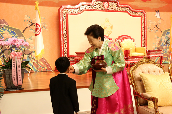 The Bowing Ceremony of the First Anniversary of Cheon Il Guk Foundation Day was held on January 13th in the 2nd Year of Cheon Il Guk at 7:00 AM by the Heavenly Calendar (February 12th), at the Cheon Jung Goong Main Hall. The True Parents of Heaven and Earth, the True Family, VIPs, including corporate executives, public and pastoral officials, elders, royal family members and Unification Church members were all in attendance, totaling about 300 participants all together.