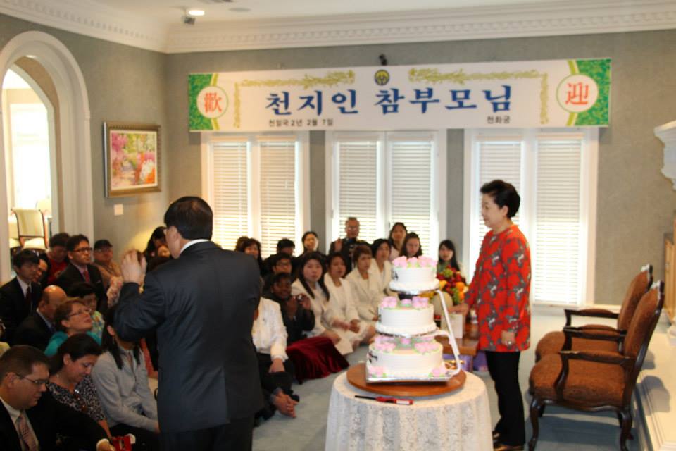 I didn't come here to talk to you. I couldn't help but decide and start things regarding what Father wanted to establish here in his last years. I am very tired. I have a blister on my lip. I have had no time to take a rest. But I had to come here. (The foundation here) could be established by the blood, sweat and tears of True Parents. You have been no help to that. In a financial sense either. You shouldn't lead your life like yesterday. I am talking to you now to tell you that you should change from now on. ('Amen!' 'Yes!') Take this (cake) and share it among you. I have things to do now. ('Thank you!') Enjoy the cake. ('Thank you')"
