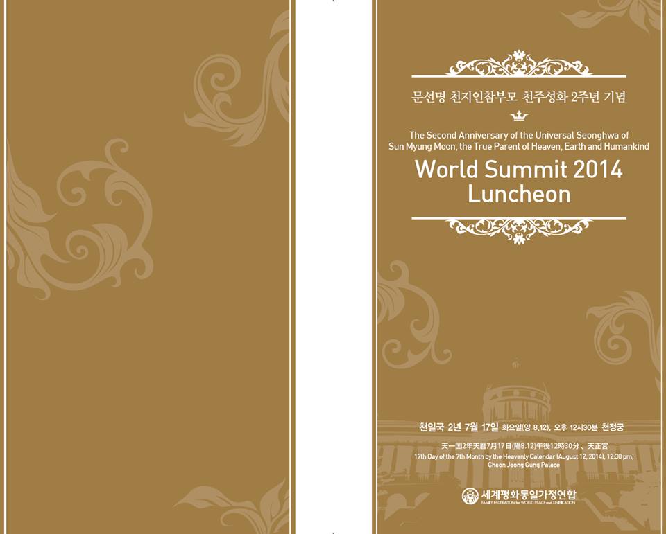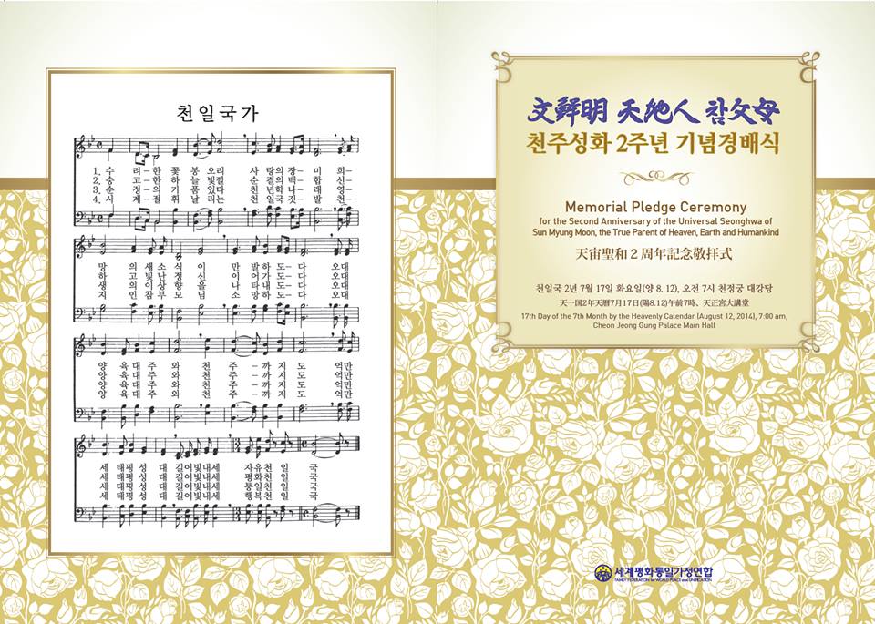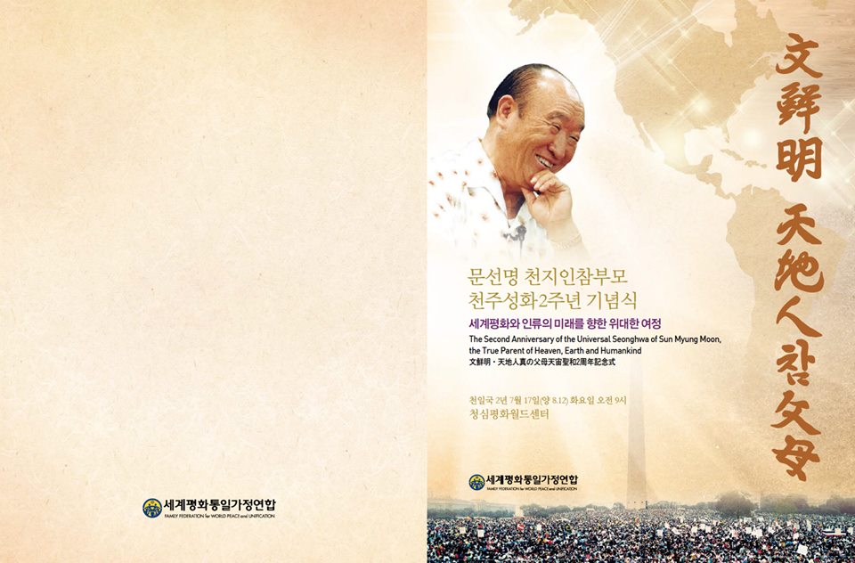 The 2nd Anniversary of the Universal Seonghwa of Sun Myung Moon,the True Parents of Heaven, Earth and HumankindForgive ․ Love ․ Unite for God's Kingdom