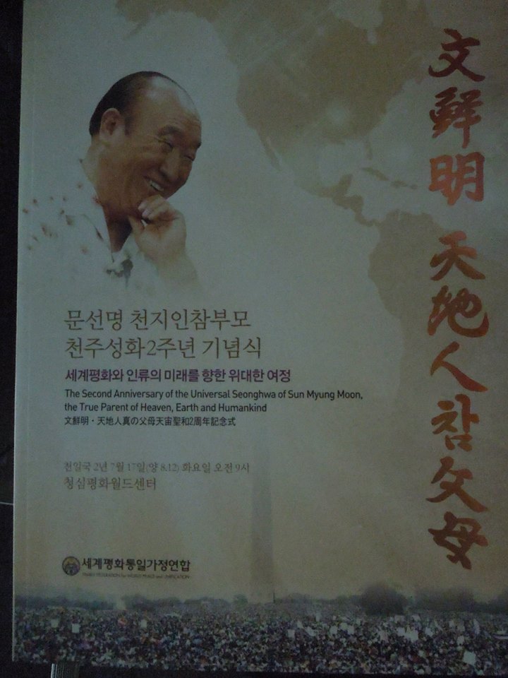The 2nd Anniversary of the Universal Seonghwa of Sun Myung Moon,the True Parents of Heaven, Earth and HumankindForgive ․ Love ․ Unite for God's Kingdom
