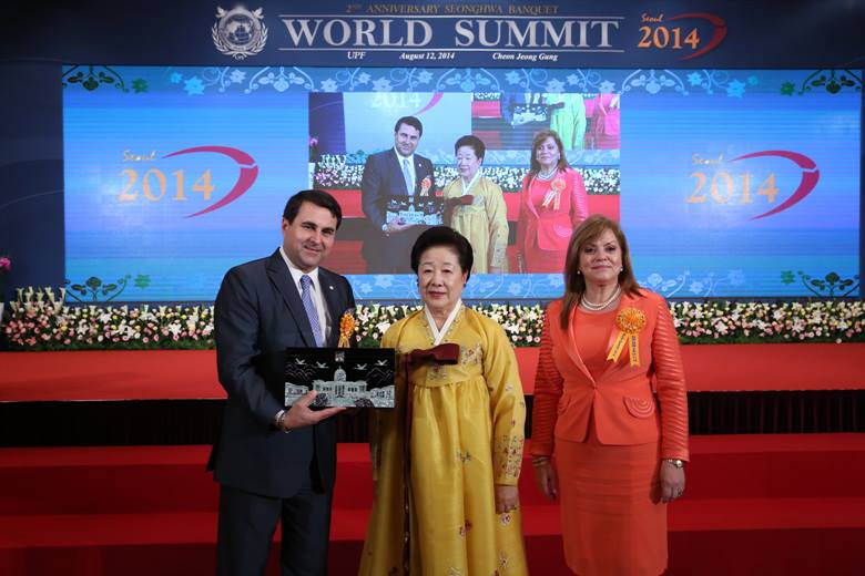 On August 12, right after “the Second Anniversary of the Universal Seonghwa Ceremony of Sun Myung Moon, the True Parent of Heaven, Earth and Humankind” at the Cheong Shim Peace World center, some VIPs and representatives from World Summit and FFWPU IHQ Strategy Conference’s participants went to peace palace to join True Mother for a banquet.