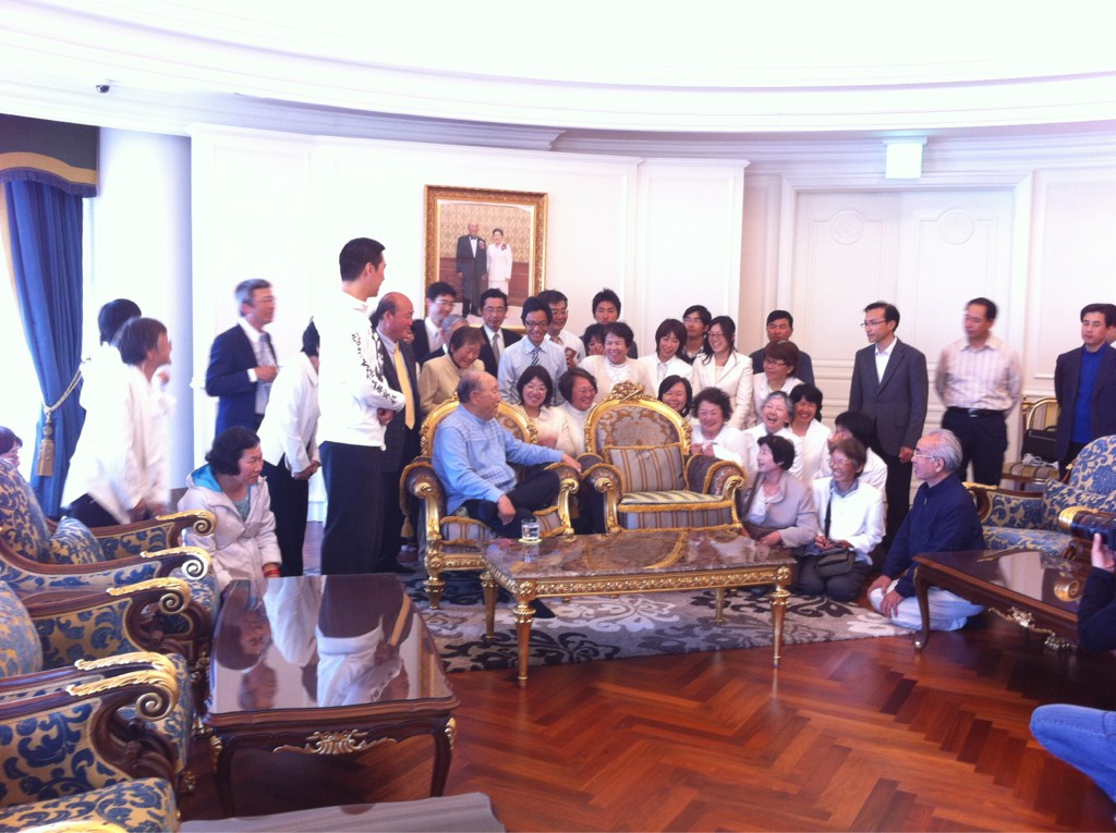 (@lovintp in English) Thirty-one Yeosu workshop trainees visiting Geomundo on the final day of their workshop had the good fortune to be able to take photos with True Father. The final boat off the island for the day was to leave at 4, and they met Father at 3. They really were fortunate.^^