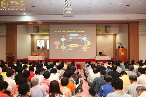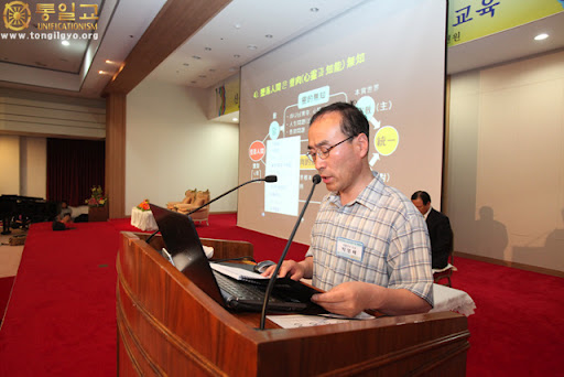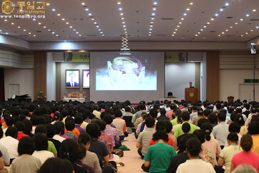 of the message. - Rev. Katsumi Kambashi Mrs. Yang read Father's speech from the Sermons of Rev. Moon