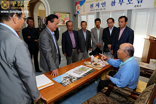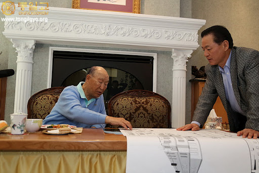 Father stayed up all night the night before and held hoondokhae on 4. 20 HC (June 9, 2012). (You can see the photos in which Rev. Yang is explaining to Father the designs of the Peace Center and the Unification Church building which will be built in Las Vegas.)