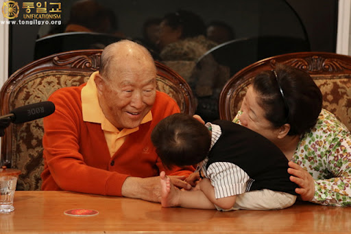 the fellowship hour following Hoon Dok Hoe. True Parents enjoy a song