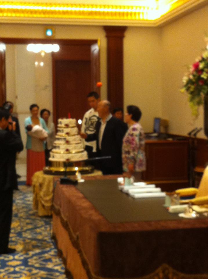 (@lovintp in English) "Just as a dedication ceremony was held following the judgement of Noah, we also give thanks for this day and asked that we may be registered among the rights of Heaven. Let us be the representatives endowed with the hegemonic victory. Aju" (True Father's prayer as he cut a cake to commemorate the sixth anniversary of the Ceremony to Enter the Cheon Jeong Gung)